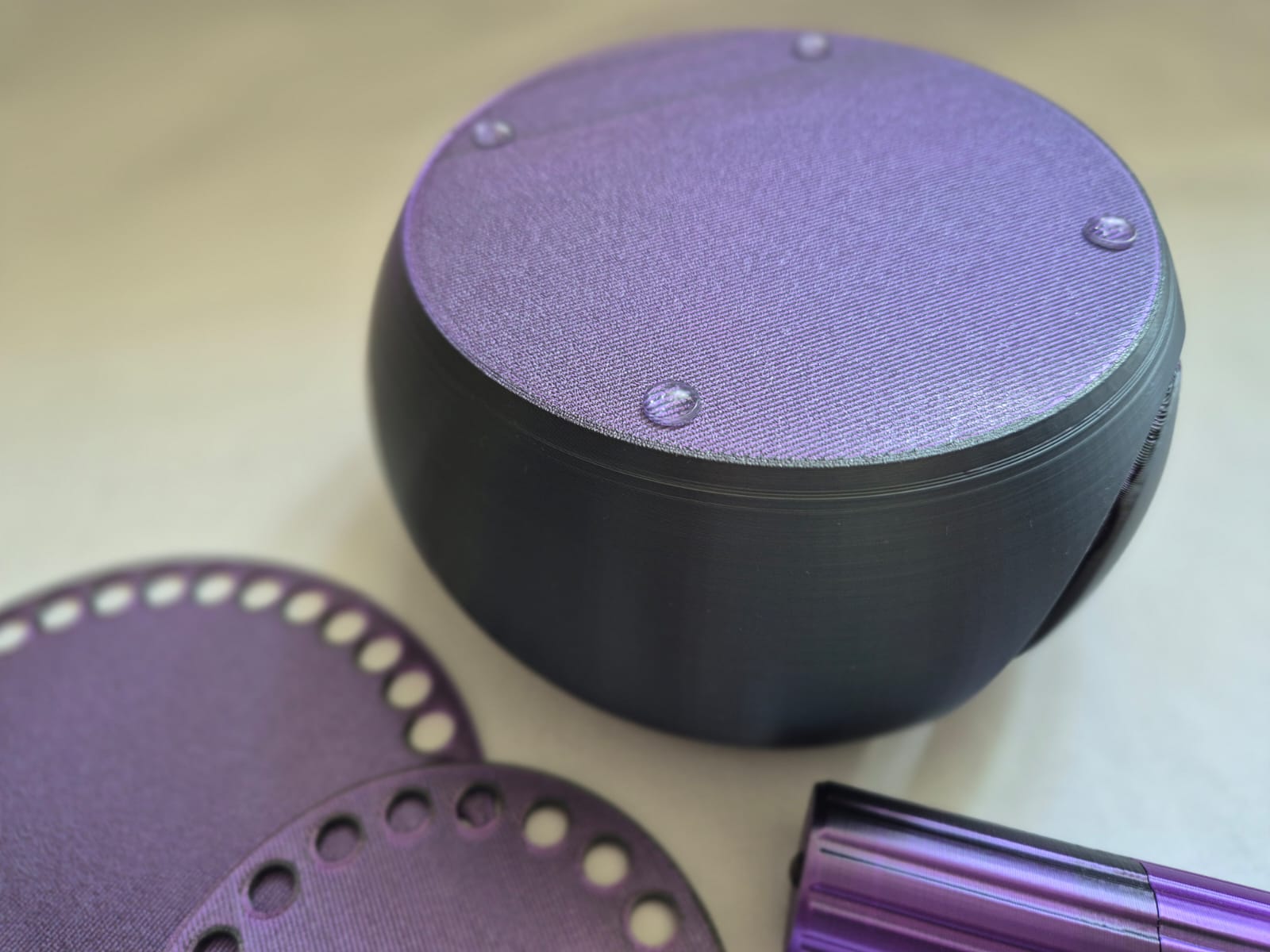 - miska na priadzu, ktorá zabraňuje odkotúľaniu klbka